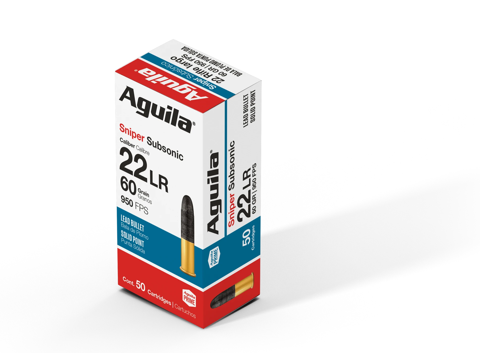 Aguila 22 Sniper Subsonic 60gr 22LR Ammunition – Lead Solid Point Rimfire Target/Range 1000 Per case 50 Per Box