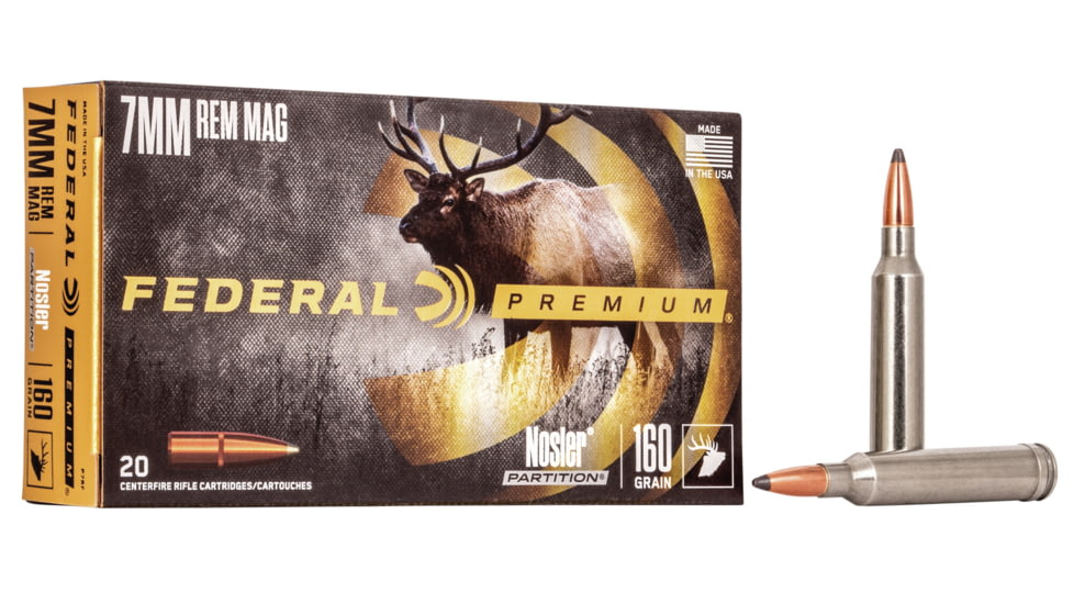 Federal Premium 7mm Remington Magnum 160 gr Nosler Partition, Box of 200 – P7RF